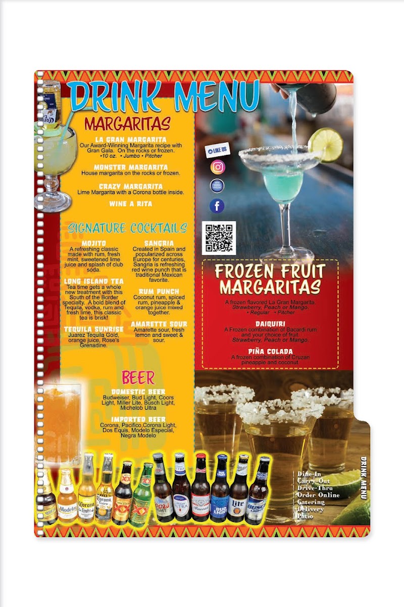 Filled with grilled steak or chicken and cooked with fajita veggies and filled with beans, rice, pico de gallo, lettuce and sour cream. Topped with cheese sauce.